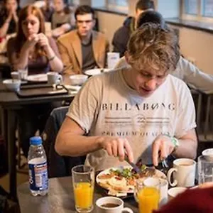 Un desayuno buffet está disponible todas las mañanas en el alojamiento. Los huéspedes pueden disfrutar de un bar del atrio. Los huéspedes pueden cocinar en una cocina del hostal.